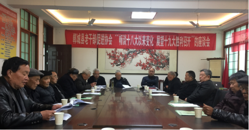 2017年,老干部促進協(xié)會決定通過采取座談訪談、調(diào)研建言、網(wǎng)評熱議、參觀考察、家風傳承、文藝創(chuàng)作、典型宣講、節(jié)慶活動等形式,在全市廣大離退休干部中開展“暢談十八大以來變化,展望十九大勝利召開”的活動,積極推進“不忘初心葆本色·中原出彩我點贊”活動。鄲城縣老同志們在思想政治建設、輿論宣傳領導、優(yōu)良傳統(tǒng)傳承、社會風氣凈化等方面積極發(fā)聲,積聚正能量、傳遞正能量,充分表達對堅持黨的領導和走中國特色社會主義道路的堅定信心,充分展示他們不忘革命初心、永葆政治本色的可貴品質(zhì),充分釋放他們對黨無限忠誠的深厚感情,積極為黨的事業(yè)發(fā)展點贊加油,為十九大勝利召開營造良好氛圍。