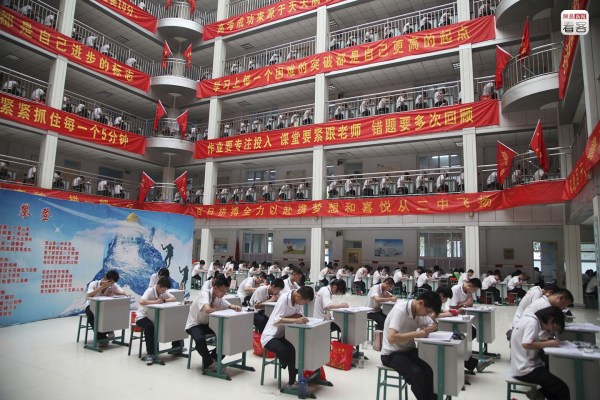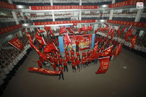 因?yàn)橐欢巍案呖际膸煷髸?huì)”,河北衡水二中走紅。在校外,人們討論這里是名校加工廠,應(yīng)試訓(xùn)練所,還是魔鬼集中營。而在校內(nèi),考生和老師宣誓要“拼盡最后一滴血”。編輯/聞烜