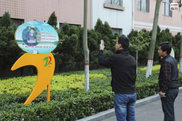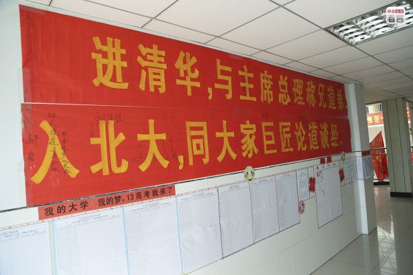 每當(dāng)空閑的時(shí)候,她便望向路對(duì)面校門口的展板上那張考上清華、北大學(xué)生與校長的大合影。她希望明年在這里也能看到女兒的身影。
