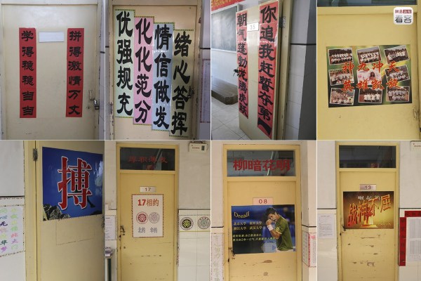 在校方的壓力之下,學(xué)生們自己也開始以不同方式給自己、給同學(xué)打雞血、互相勵(lì)志。圖為學(xué)校的“門文化”。