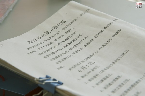 “我來學(xué)校做什么?我要做一個(gè)什么樣的人?我今天做得怎么樣?”貼在教學(xué)樓大廳的這個(gè)標(biāo)語被稱為“每日三思”。在高考前20天,班級(jí)里激勵(lì)標(biāo)語則是“20天大于3年,20天約等于一輩子”。
