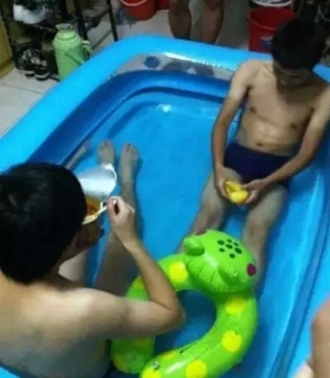 對于沒有空調(diào)的宿舍,夏天是最難熬的??磥頌榱吮苁?,童鞋們想盡了各種奇葩招數(shù)啊!宿舍居然還有泳池??!很清涼?。?!有木有?。。?/p>