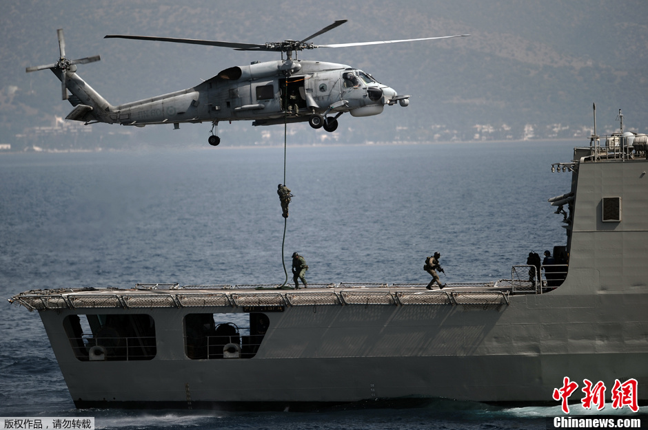 2012年4月6日,希臘特種部隊(duì)在愛(ài)琴海舉行軍事演習(xí)。