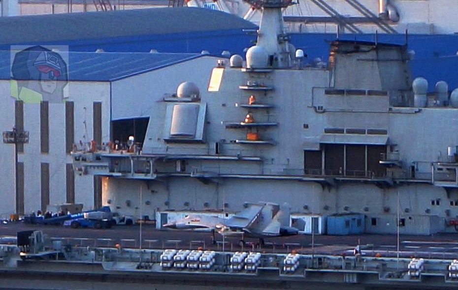 據(jù)網(wǎng)友拍攝的照片顯示,正在大連進(jìn)行改裝的瓦良格號航母的改裝工作有了最新進(jìn)展,甲板上出現(xiàn)了兩架類似艦載機(jī)的模型。(超大軍事從小就黑供圖)