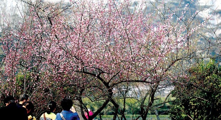 昨日,碧沙崗公園,紅梅盛開(kāi),游人爭(zhēng)相合影。 記者 張翼飛 圖