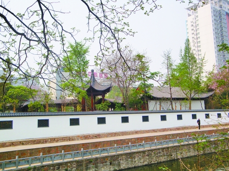 昨日上午,記者在現(xiàn)場看到了這座袖珍式高檔花園,其外部是兩米高的圍墻(如圖)。遠遠看去,里面亭臺樓閣樣樣俱全,還栽滿各色花木。透過墻上的鏤空窗,記者看到木質(zhì)長廊將各建筑連為一體,園子正中還堆有假山。有工作人員正在里面施工,出入口則設(shè)立著擋板。有市民質(zhì)疑稱,現(xiàn)在不少地方都拆墻透綠了,這么好的景致為何圍上不讓欣賞。