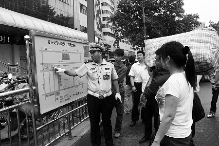 大河報(bào)訊 很多外地來鄭人員在火車站下車后經(jīng)常向民警問路,昨日,鄭州交巡警三大隊(duì)聯(lián)合市公交總公司在火車站南、北出站口分別設(shè)置一塊公交線路示意圖(如圖),方便乘客按照?qǐng)D示選擇線路。