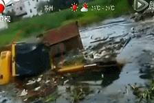 實拍挖掘機沼澤沉沒瞬間司機逃出