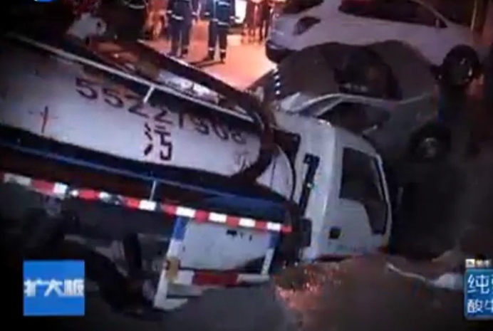 鄭州道路再塌陷 同時吞倆車