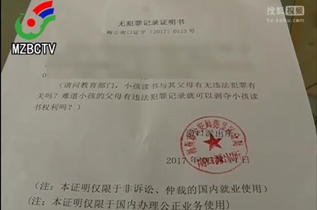 • 小孩入學(xué)需家長無罪證明 派出所霸氣懟回