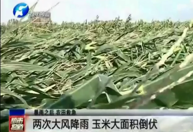 兩次大風(fēng)降雨 玉米大面積倒伏