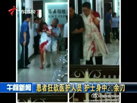 9月3日上午,一名43歲的男子在深圳鵬程醫(yī)院候診時(shí)突然拔出菜刀,將一名耳鼻喉科醫(yī)生砍傷后,再傷一名女導(dǎo)醫(yī)和一名保安,隨后挾持一名護(hù)士狂砍,護(hù)士身中20余刀。目前,4人均被送醫(yī)院治療,暫無生命危險(xiǎn)。據(jù)了解,當(dāng)事男子曾在該醫(yī)院找當(dāng)事醫(yī)生看過鼻炎,因治療效果不明顯,懷恨在心,昨日攜帶4把刀到醫(yī)院報(bào)復(fù),目前其已被警方刑事拘留。