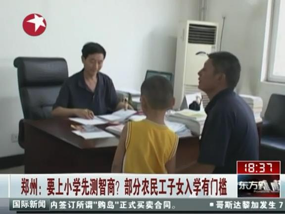 孩子要想接受義務(wù)教育,除了要辦齊各種手續(xù),還要進(jìn)行智商測(cè)驗(yàn),開具醫(yī)院相關(guān)證明--這是來自河南南陽鄧州農(nóng)民工魏雙恒的8歲兒子航航在鄭州市建設(shè)路三小求學(xué)時(shí)遭遇的難題。