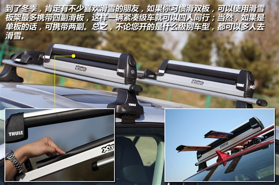 如果您是一個狂熱的戶外運動愛好者,還可以選擇安裝滑雪板架或船架。滑雪板架體積小巧,適合安裝在各類車型上,按照普通規(guī)格的滑雪板架可攜帶4組滑雪雙板或者1個滑雪單板。不過如果安裝船架,就對您的座駕有所要求了,并不是因為船架的安裝復(fù)雜,而是在安裝了船體之后,超出部分的長度在交規(guī)中是有規(guī)定的,所以最好是使用中級車以上(包含中級車)的車型。