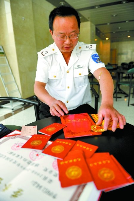 雖說(shuō)他熱衷于為大河報(bào)提供新聞線索,但提起自己的獻(xiàn)血經(jīng)歷卻不想多說(shuō)。在記者的反復(fù)詢問(wèn)下,李四信說(shuō),他于2002年1月開(kāi)始第一次獻(xiàn)血。當(dāng)時(shí),他與朋友在二七廣場(chǎng)附近游玩時(shí)看到一輛采血車,出于好奇就去獻(xiàn)了400毫升全血,因?yàn)槭呛檬?,獻(xiàn)過(guò)后自己很開(kāi)心。從那以后,自己對(duì)獻(xiàn)血便“上了癮”,剛開(kāi)始按獻(xiàn)全血的規(guī)定,每隔半年獻(xiàn)一次,一次400毫升;后感覺(jué)獻(xiàn)全血隔的時(shí)間有點(diǎn)長(zhǎng),就開(kāi)始獻(xiàn)成分血,一個(gè)月就可以獻(xiàn)一次。其間,他獲得過(guò)鄭州市紅十字會(huì)、中國(guó)紅十字會(huì)總會(huì)等多個(gè)部門頒發(fā)的獻(xiàn)血榮譽(yù)證書(shū)。