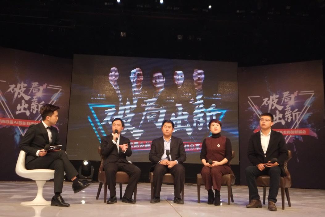 最后,美克創(chuàng)客創(chuàng)始人韓可蘇先生、 大山教育集團(tuán)董事長(zhǎng)張紅軍先生、現(xiàn)代教育集團(tuán)運(yùn)營(yíng)總監(jiān)董文靜女士、鄭州星源外國(guó)語(yǔ)學(xué)校校辦副主任張高峰先生圍繞著《AI時(shí)代民辦教育智能創(chuàng)新實(shí)戰(zhàn)經(jīng)驗(yàn)分享》的話題進(jìn)行了圓桌論壇。四位嘉賓分別從社會(huì)熱點(diǎn)到教育理念展開(kāi)實(shí)戰(zhàn)分享,充分展望未來(lái)AI技術(shù)與教育結(jié)合的創(chuàng)新方向。