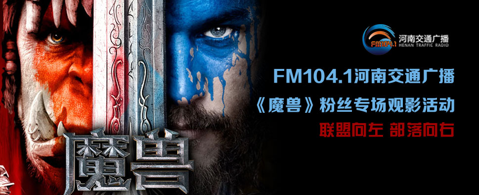 河南交通廣播《魔獸》電影粉絲觀影會入場券也將通過節(jié)目發(fā)放,周一到周五晚上18:00—19:00鎖定FM104.1馬路歡樂派節(jié)目,我們會不定時發(fā)放入場門票。