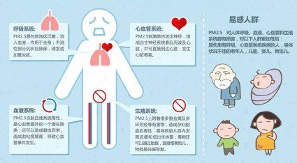 霧霾天由于紫外線照射不足,人體內(nèi)維生素D生成不足,易產(chǎn)生精神懶散、情緒低落等現(xiàn)象,還可能導(dǎo)致缺鈣。美國(guó)一項(xiàng)結(jié)果顯示,生活在空氣污染較為嚴(yán)重的環(huán)境下的孕媽,他們娩出的寶寶出生體重降低9%,頭圍數(shù)減少2%,對(duì)比空氣相對(duì)較好的孕媽們娩出的寶寶則沒有明顯的變化。研究表明,空氣污染對(duì)胎兒的低出生體重和小頭圍有關(guān),環(huán)境污染對(duì)胎兒生長(zhǎng)構(gòu)成威脅。綠色和平組織發(fā)布的有關(guān)PM2.5對(duì)人體危害的警告:PM2.5上附著很多重金屬及多環(huán)芳烴等有害物,造成孕婦胎盤有毒性,易導(dǎo)致胎兒宮內(nèi)發(fā)育遲緩和低出生體重;毒物還可以通過胎盤,直接毒害胎兒,特別是妊娠早期。