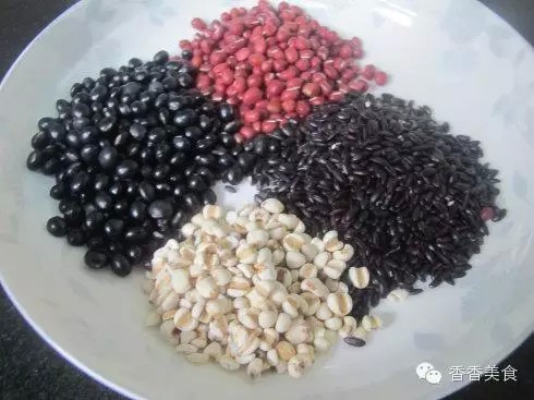 黑豆:味甘性平,具有祛風(fēng)除熱、調(diào)中下氣、解毒利尿、補(bǔ)腎養(yǎng)血、抗衰老、養(yǎng)顏美容的功能。黑豆還含有豐富的抗氧化劑——維生素E,能清除體內(nèi)的自由基,減少皮膚皺紋,達(dá)到養(yǎng)顏美容、保持青春的目的。 紅豆:性平偏涼,味甘,含有蛋白質(zhì)、脂肪、糖類(lèi)、維生素B族、鉀、鐵、磷等,具有補(bǔ)血、促進(jìn)血液循環(huán)、強(qiáng)化體力、增強(qiáng)抵抗力的效果。紅豆更是女性健康的好朋友,豐富的鐵質(zhì)能讓人氣色紅潤(rùn)。 黑米:性平,味甘,具有滋陰補(bǔ)腎,健脾暖肝、補(bǔ)益脾胃,益氣活血,養(yǎng)肝明目等療效。經(jīng)常食用黑米,有利于防治頭昏、目眩、貧血、白發(fā)、眼疾、腰膝酸軟、肺燥咳嗽、大便秘結(jié)、小便不利、腎虛水腫、食欲不振、脾胃虛弱等癥。 薏米:性平味甘,微寒,有利水消腫、健脾去濕的功效,常食可以保持人體皮膚光澤細(xì)膩,消除粉刺、斑雀、老年斑、皮膚粗糙等都有良好療效。黑芝麻:補(bǔ)肝腎,益精血,潤(rùn)腸燥。用于頭暈眼花,耳鳴耳聾,須發(fā)早白,病后脫發(fā),腸燥便秘。