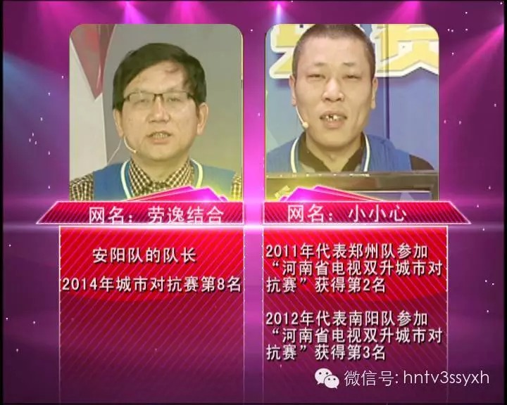 從今天開始,河南全省大部分地區(qū)正在逐步升溫,大家可以適時(shí)脫去厚重的棉衣,換上輕便的外套盡情沐浴春風(fēng)。伴隨著漸漸暖和的天氣,我們的精英賽事也在如火如荼的進(jìn)行當(dāng)中。 今晚將要進(jìn)行的是下半?yún)^(qū)第2輪敗者組的第4場(chǎng)比賽,是由焦作精英“彤輝”和“驚雷”對(duì)陣安陽精英“勞逸結(jié)合”和“小小心”?!皠谝萁Y(jié)合”和“小小心”是初次搭檔,“勞逸結(jié)合”是安陽隊(duì)的隊(duì)長(zhǎng),連續(xù)三年帶領(lǐng)安陽隊(duì)選手參加城市對(duì)抗賽,2014年城市對(duì)抗賽獲得第8名;“小小心”曾代表鄭州隊(duì)參加2011年“河南省電視雙升城市對(duì)抗賽”獲得第2名,2012年代表南陽隊(duì)參加“河南省電視雙升城市對(duì)抗賽”獲得第3名。