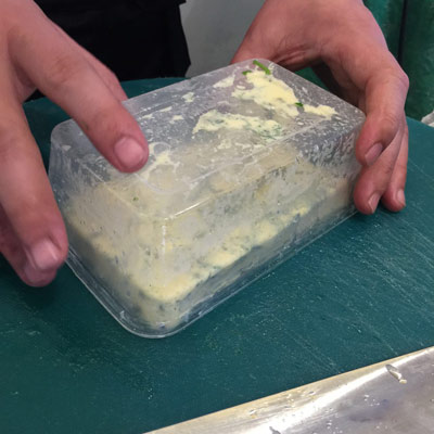 四、蒸好的豆腐放涼后扣出。