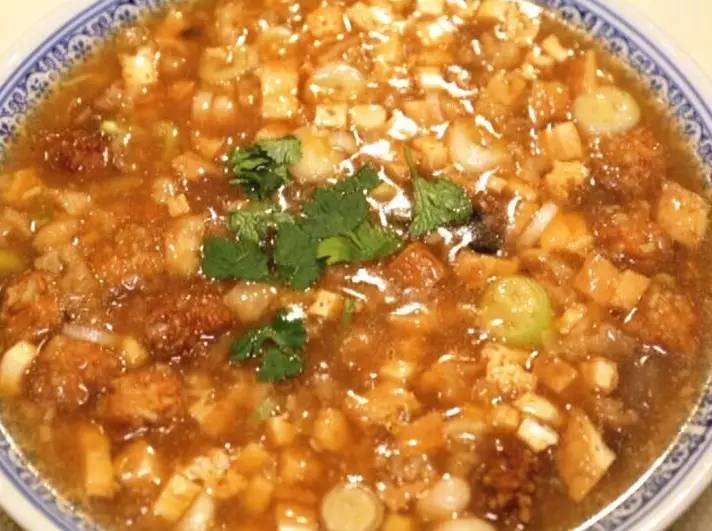 喜愛(ài)酸辣口味的吃貨,也可以來(lái)一份小碗湯。色澤紅潤(rùn)的湯汁,配著油炸豆腐焦炸丸子等,就讓人一看就有了食欲。胡椒的辣味和姜的鮮味很突出,喝起來(lái)酸辣過(guò)癮口感很豐富。