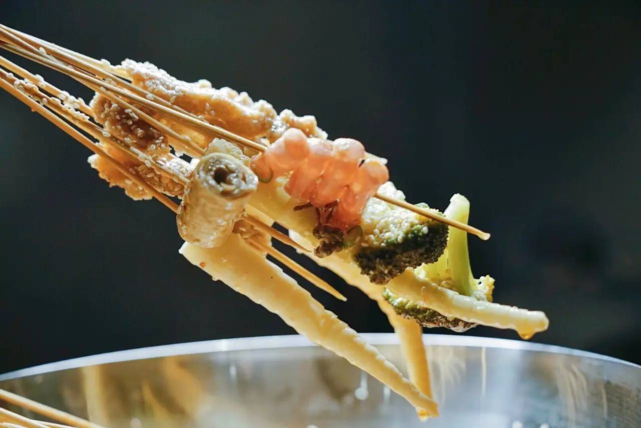 重慶喜辣更江湖,成都重麻更市井。而椒麻鍋底的冷鍋串,就是成都特色。藤椒芝麻和小米辣的放入,讓鍋底有了香麻的口感。青白兩色的搭配,看起來也特別清爽。