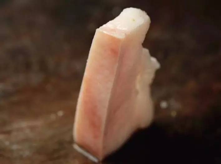 與常見的肥肉不同,黑豬肉肉質(zhì)十分緊實,隨手切下來一塊放在桌子上就能直立起來不會塌架的。肉皮十分緊致,用手怎么捏都不會變形。