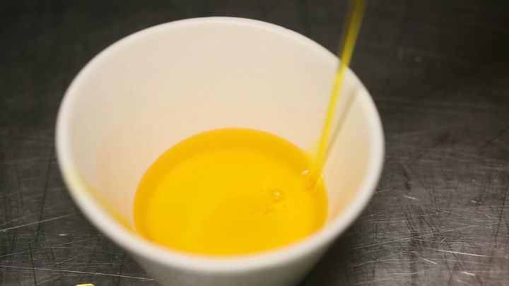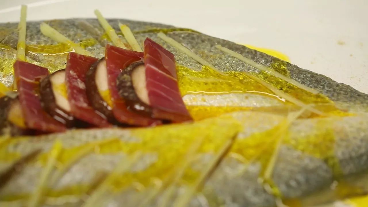 這種黃金油是用南瓜做底,還加入了花椒油等調(diào)料。整體清澈透明,聞起來有一股甜甜的香味,均勻澆在大黃魚身上。上爐蒸制的時候,料油在高溫作用下充分滲透進(jìn)了魚肉里,不僅可以給魚肉調(diào)味增鮮,還能提升整道菜的顏值。