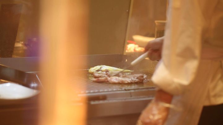 主廚研發(fā)的新式廣東菜——萬怡黑豆腐,乍一看很像豆腐泡,咬開卻是嫩滑的像布丁一樣的雞蛋豆腐。制作時還特意加入了海苔,也增添了幾分鮮香。肉末和高湯燒成醬汁裹在黑豆腐上,再配上入口即化的雞蛋豆腐,今天的晚飯穩(wěn)了!