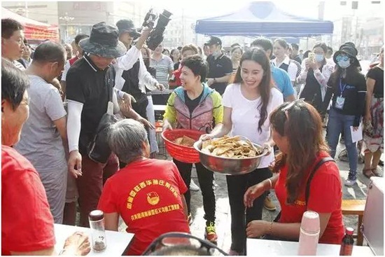 活動當(dāng)天,義賣所得的款項將全部用于孫莊村的扶貧工作。當(dāng)天的網(wǎng)絡(luò)直播點擊量近十萬,也給當(dāng)?shù)睾睖a(chǎn)業(yè)帶來了巨大的品牌效應(yīng)。在活動現(xiàn)場,鄧亞萍還認(rèn)識了忙著炸麻葉的李二磊。嘗了一口二磊炸制的麻葉,鄧亞萍立刻愛上了這種美味小吃,動手跟二磊學(xué)著做起了麻葉。