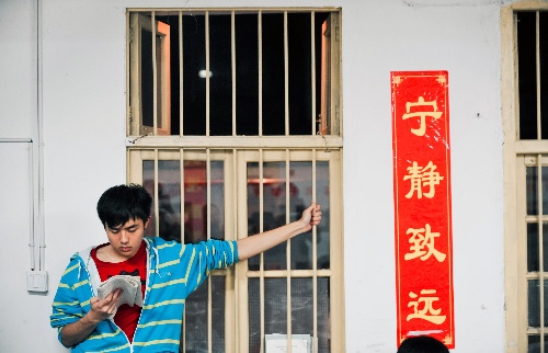 2012年6月4日 “高四”日記:5月23日,復(fù)讀學校內(nèi),學生李武經(jīng)過寫有高考倒計時的黑板前。他在5月27日的日記中寫道,“距離高考僅剩下十多天了,心里的緊張躁動也越來越強,尤其是對于我們高考復(fù)讀生來說,壓力挺大?!?位于長沙市郊的一所名叫達材的復(fù)讀學校內(nèi),有1000多名“高四”復(fù)讀生。在高考倒計時100天的時候,每個班級開始用一本高考日記記錄下他們在又一次面對高考時的歡笑與淚水,回憶與憧憬,迷茫與堅定...... 新華社記者 白禹 攝