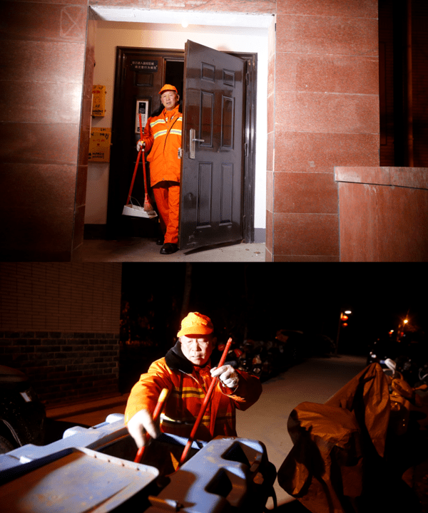 05:00,到達工作地點,唐師傅放好車,拿出工具一個粗竹掃帚、一把鐵鏟、開始清掃“早晨是我們最忙的時候,不僅要把各自負責區(qū)域內的路面打掃一遍,還要把垃圾及時清運走,你看昨晚上的霜降,垃圾沾到路面上很難掃,得拿笤帚“推”,工作量要大很多?!?/p>